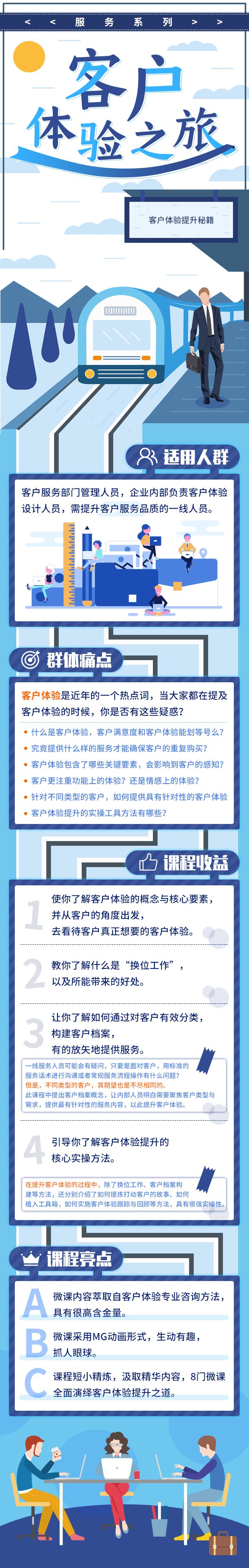 只要你有客户,有为他们提供产品/服务就会有客户体验,这种体验无时无刻都在影响着客户对企业和品牌的认知。本课程将为你理清客户体验的概念、组成及特性,教你科学有效的方法不断提升客户体验,让你的产品、流程、人员更贴近客户需求。