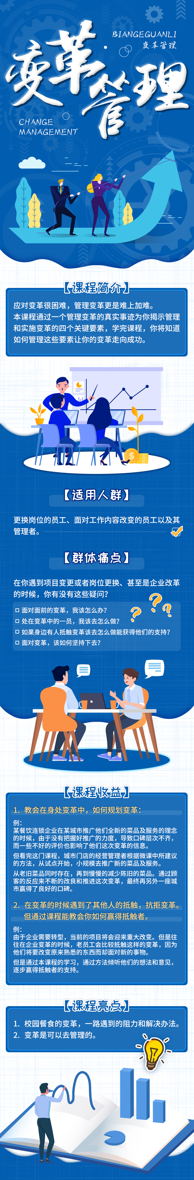 应对变革很困难,管理变革更是难上加难。本课程通过一个管理变革的真实事迹为你揭示管理和实施变革的四个关键要素,学完课程,你将知道如何管理这些要素让你的变革走向成功。